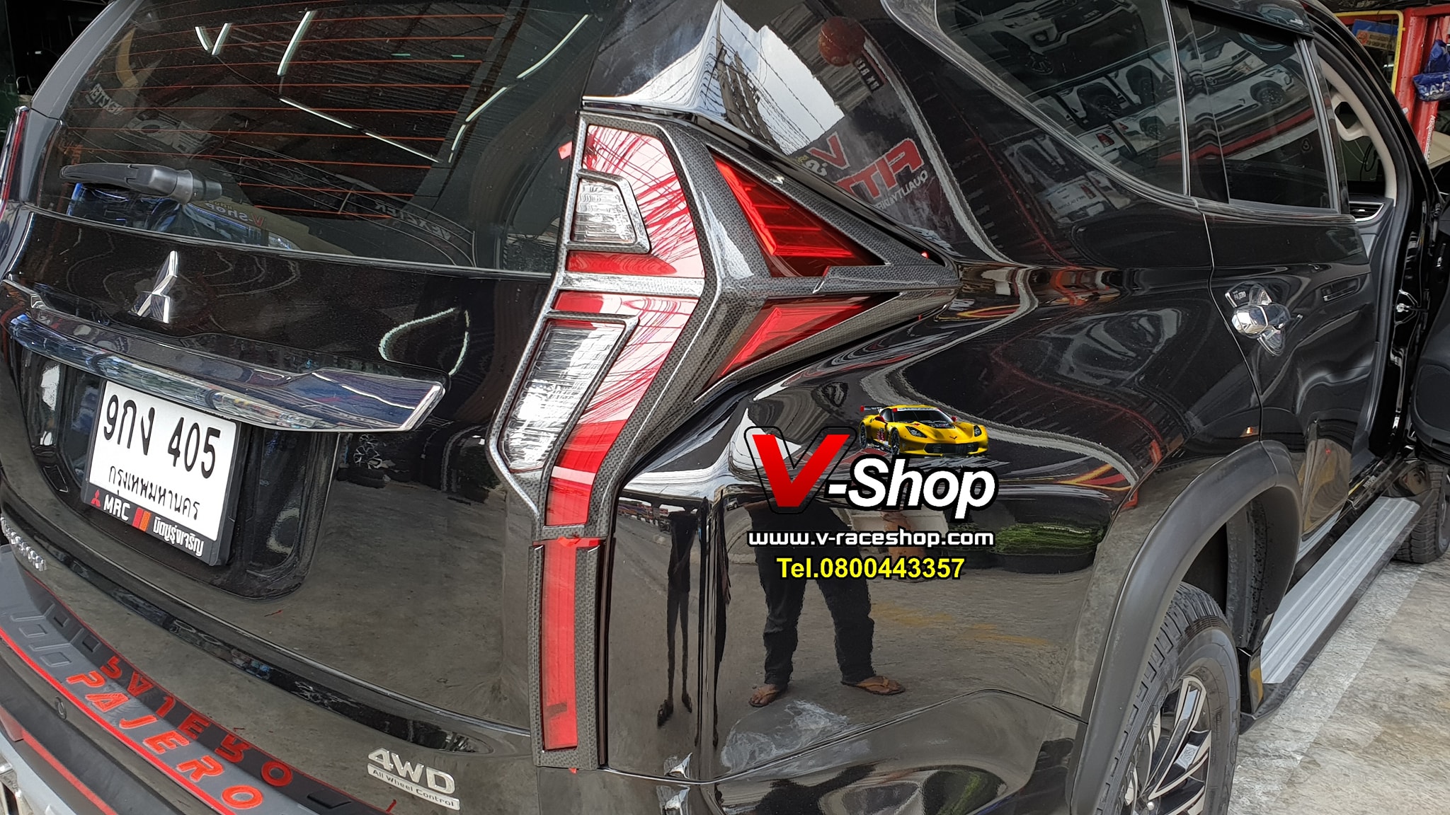 Pajero 2020 ครอบไฟท้าย ดำด้าน/โครเมี่ยม ชุดละ 900.- ลายเคฟล่า 1,000.-