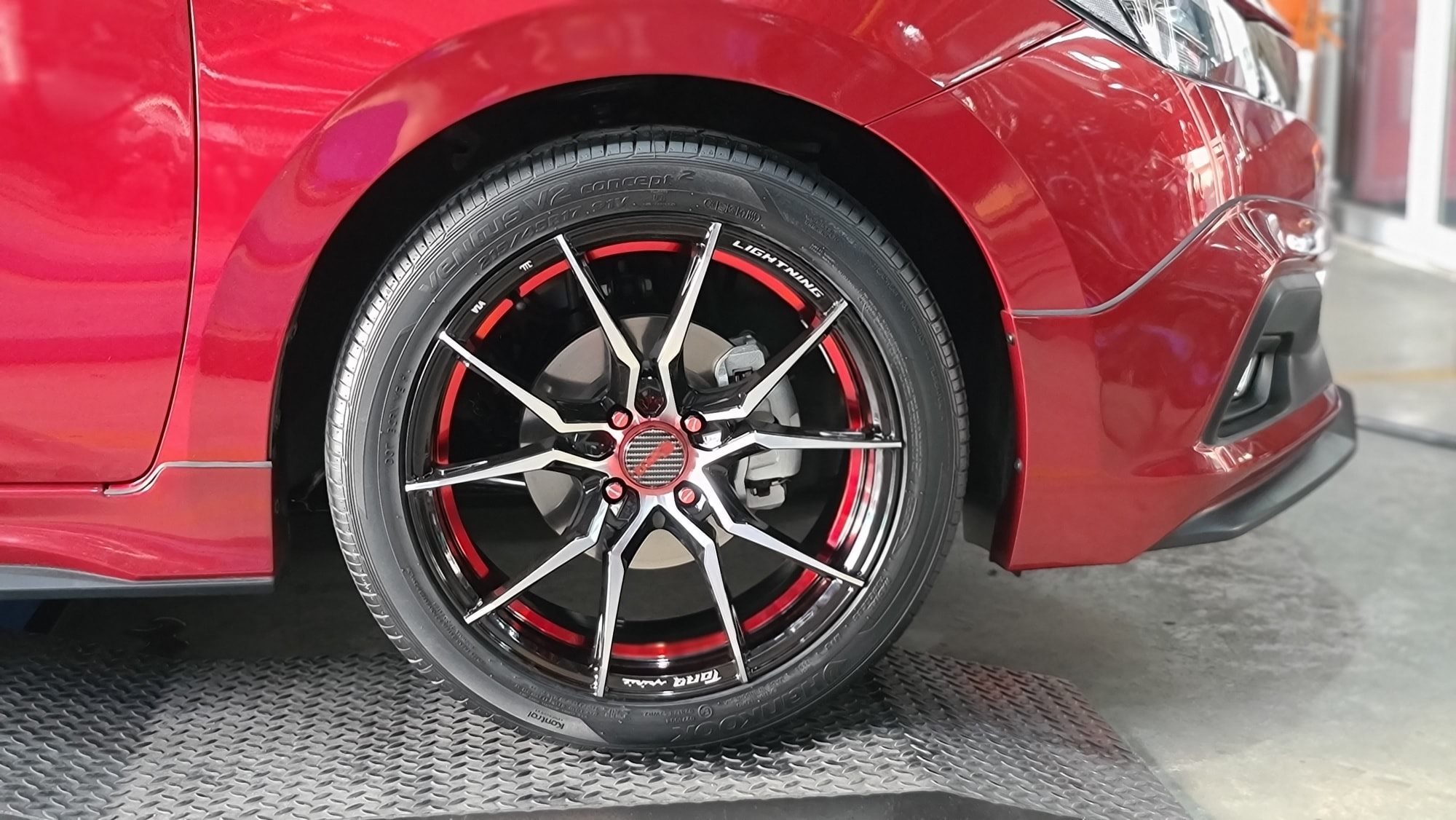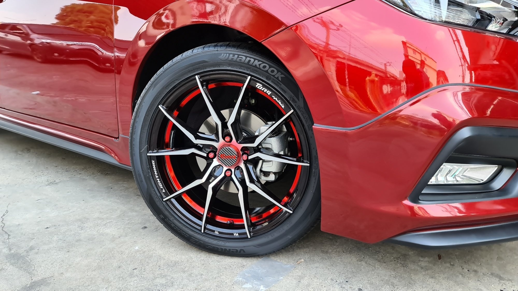 -จัดล้อ Sun กานเงาท้องแดง ขอบ 17" พร้อมยาง. Hankook V2 215/45/17 หล่อแบบเต็มๆซุ้ม