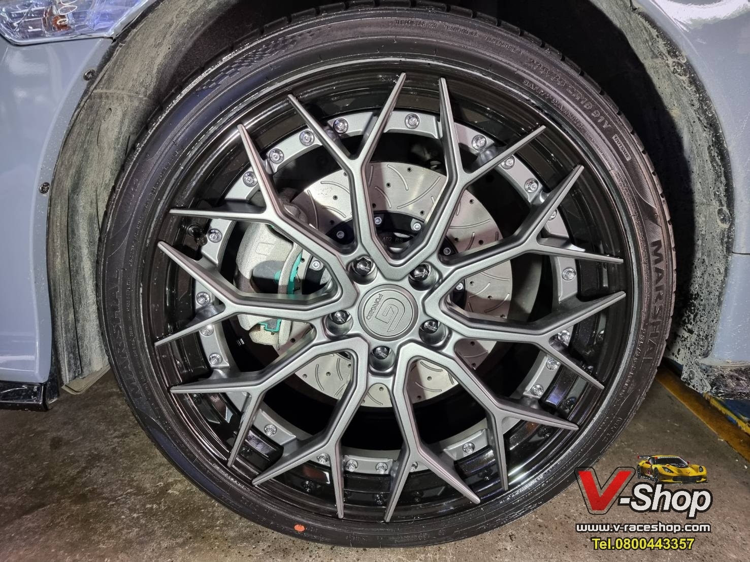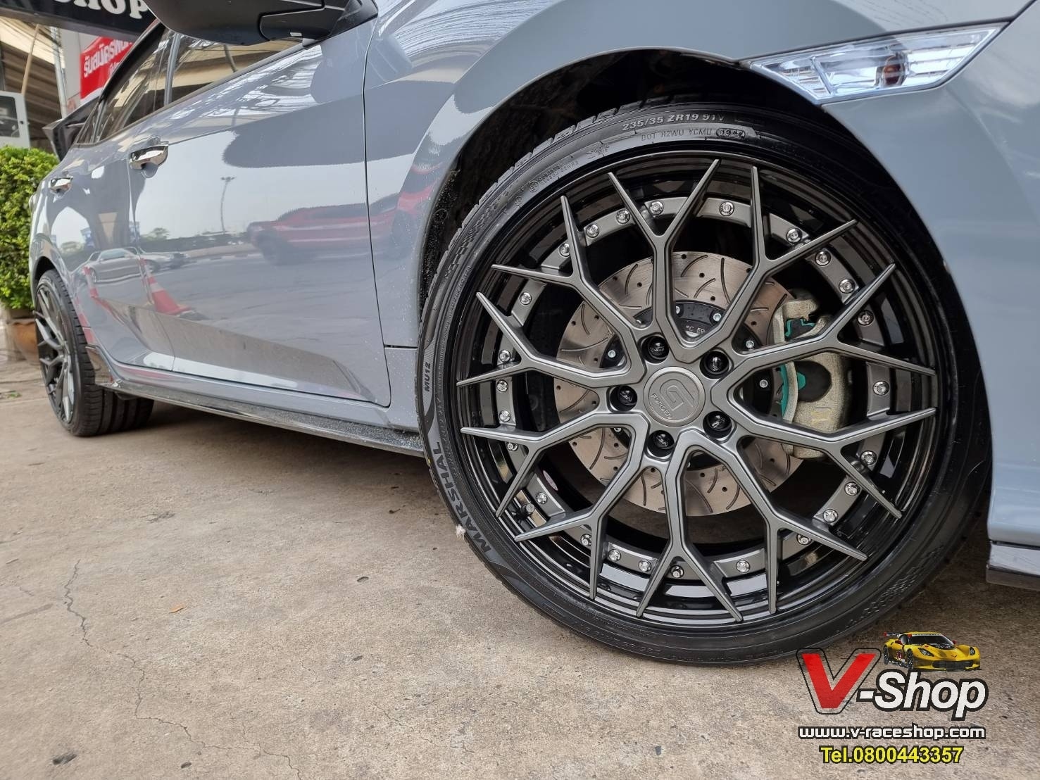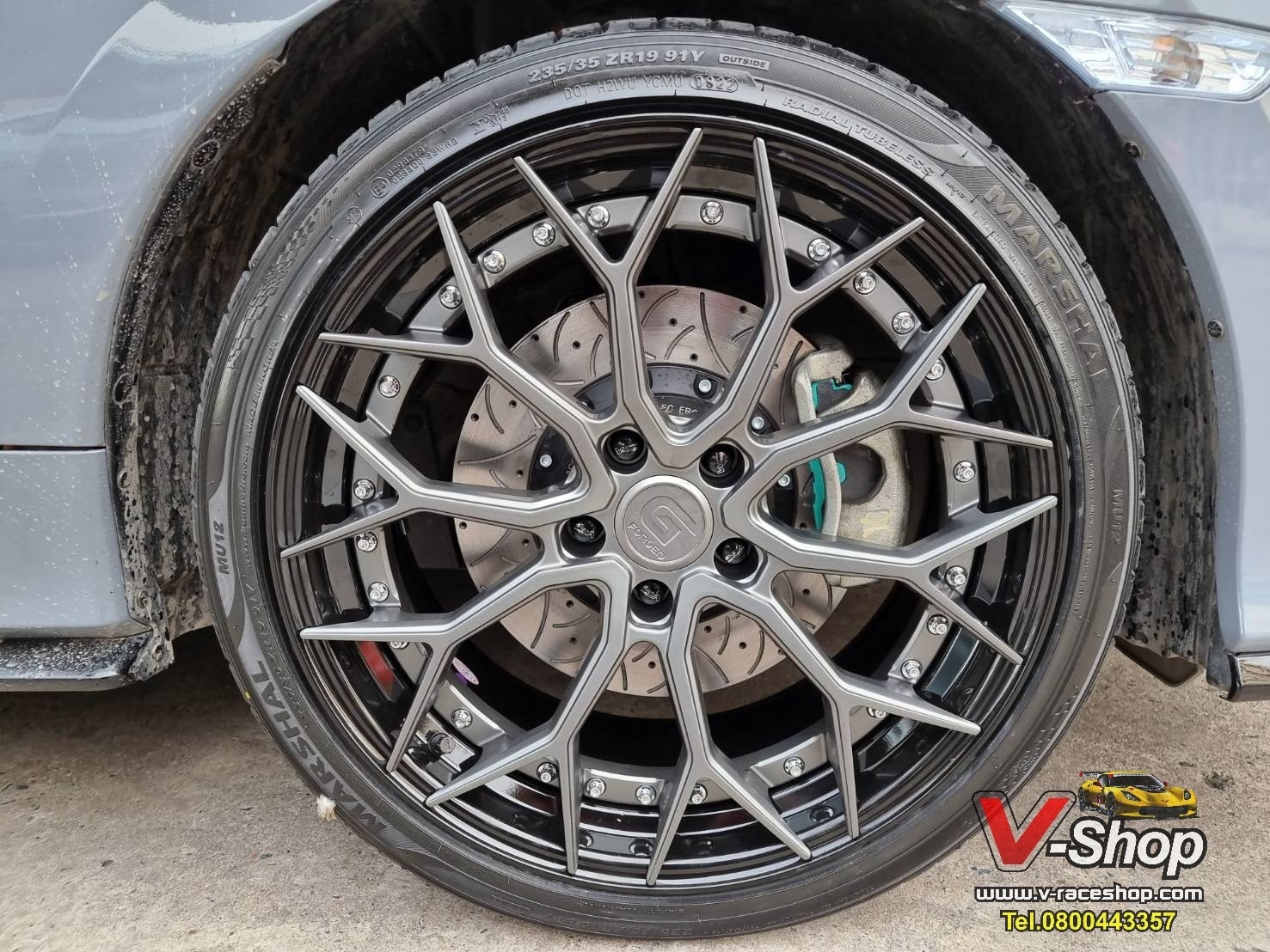 -จัดล้อ #Gforged #GF03 ขอบ 19" ล้อ 2ชิ้น Flowforming กับ spec หน้า 8.5 et32 หลัง 9.5 et38 สีเทากันด้านริมดำเงา