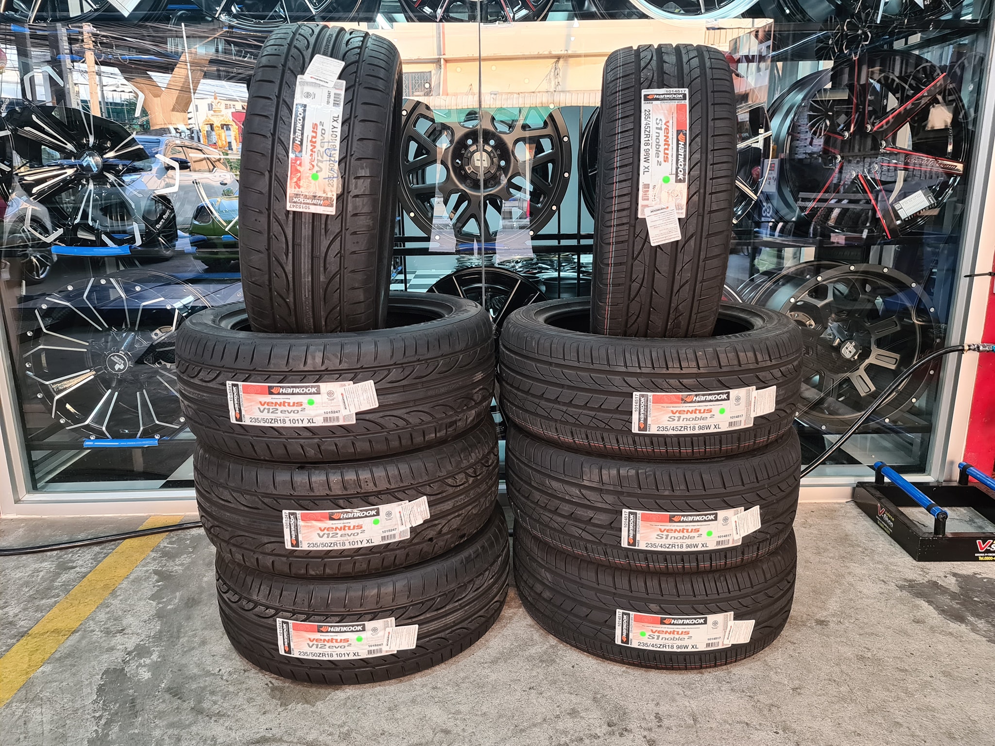 -Hankook Ventus V12 235/50/18. ยาง sport ราคาโปรฯเบาๆ ชุดละ 10,000 ถ่วงใส่ เติมลมไนโตเจนให้เรียบร้อยพร้อมดูแลกันยาวๆครับผมขอบคุณคราบ