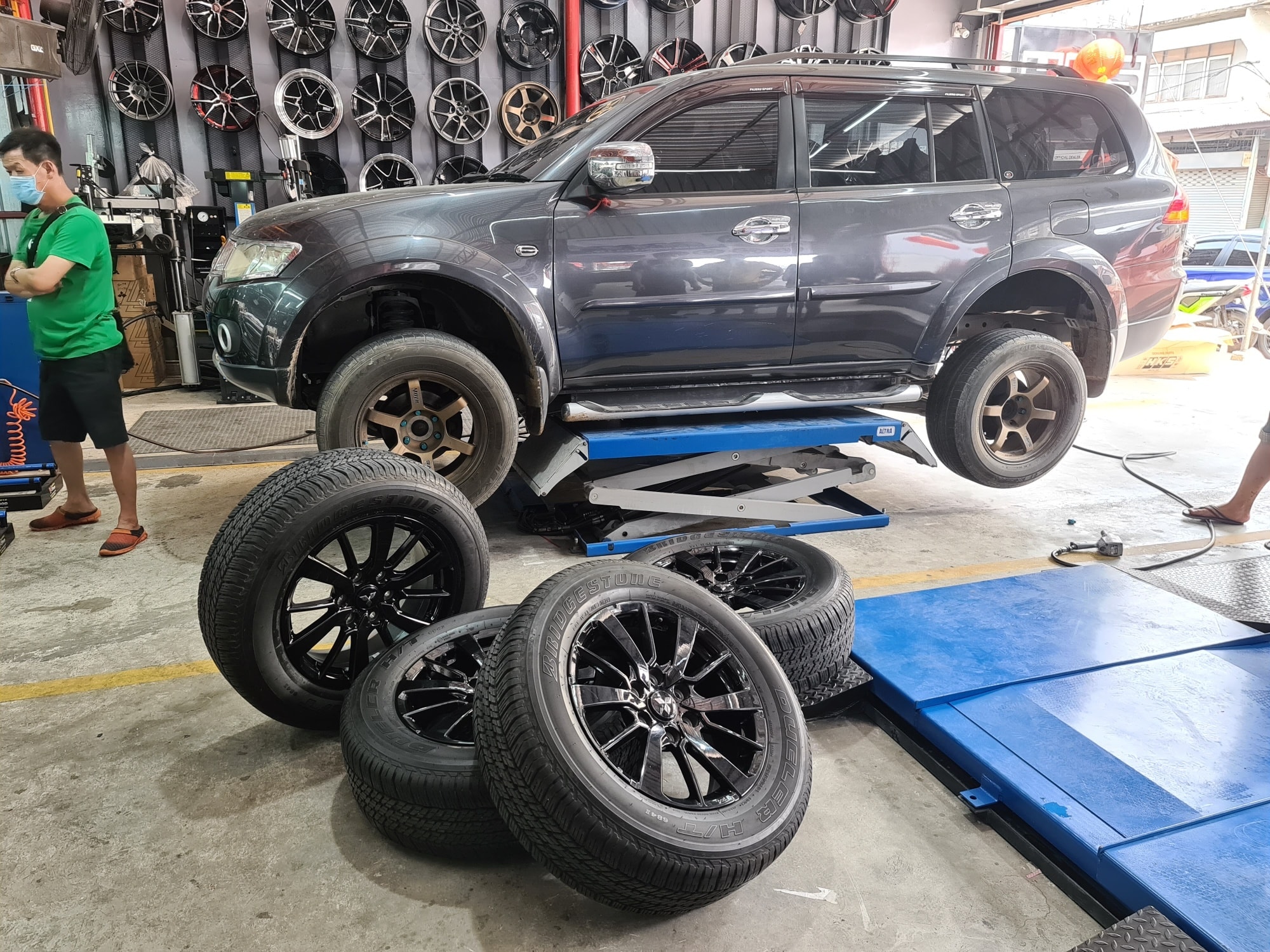 Pajero เก่า แวะมาจัด ล้อ Pajero Black Edition ดำเงาจากโรงงานถอดพร้อมยาง Bridgestone ยางหนาๆ ใช้ยาวๆไปอีกชุดสุดคุ้มครับผม
