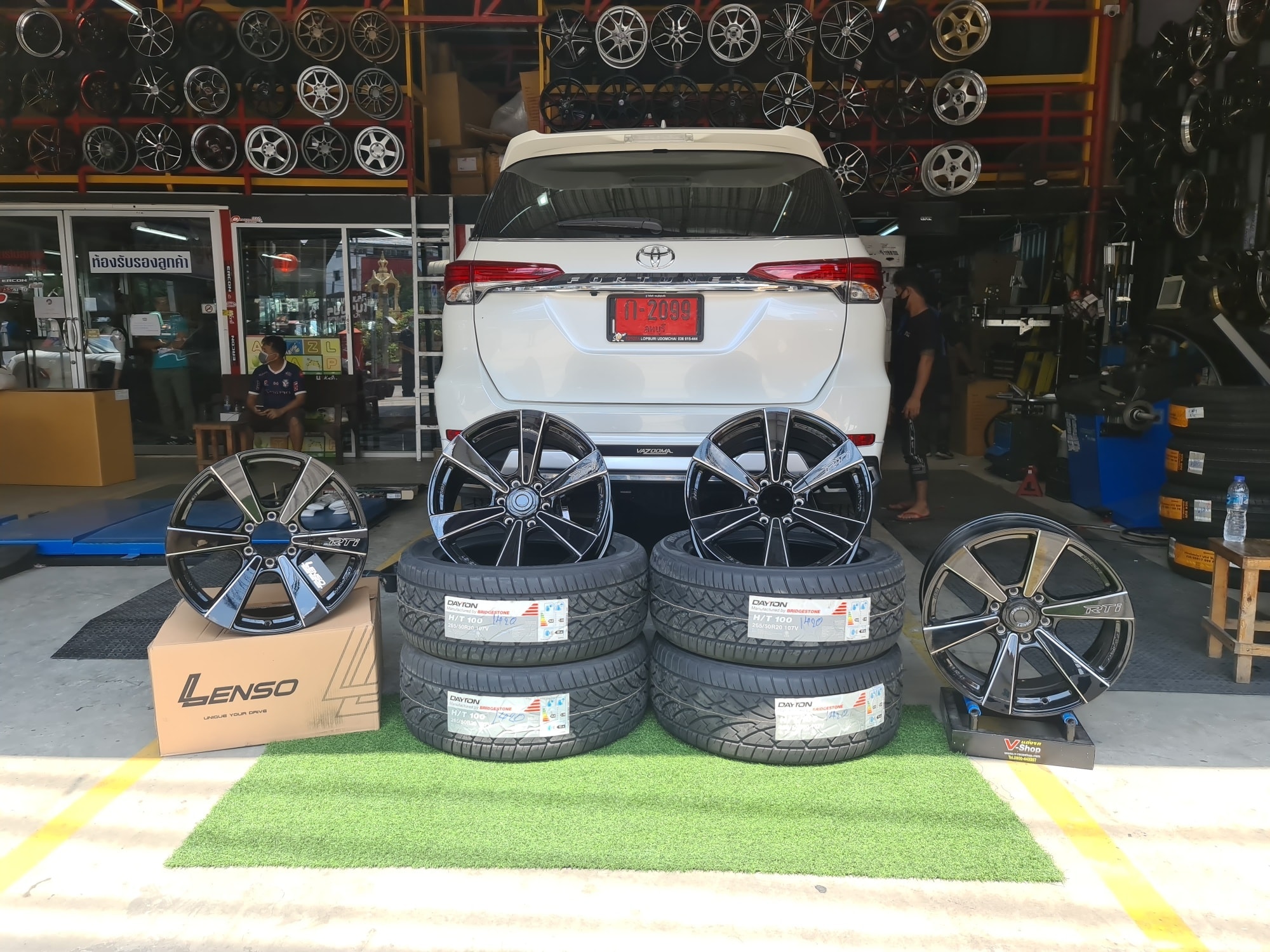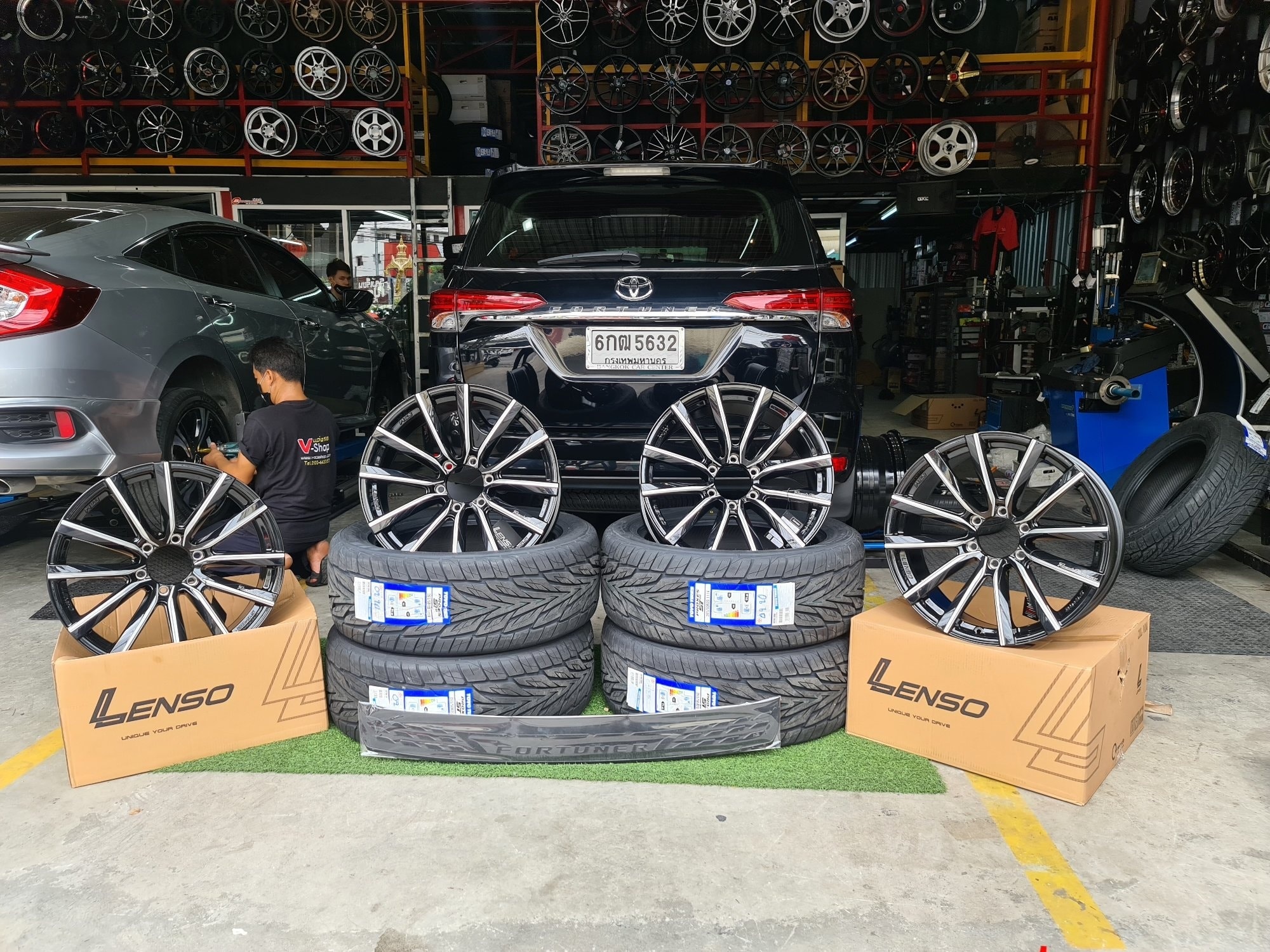 -ล้อ #Lenso Black Angel 9 ขอบ 20" กว้าง 9" หล่อพอดีซุ้ม พร้อมรัดยาง #Toyo ST3 Japan 265/50/20