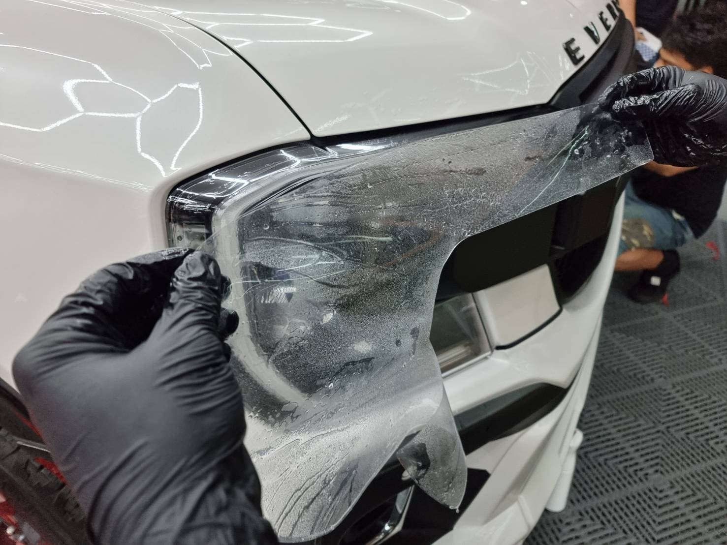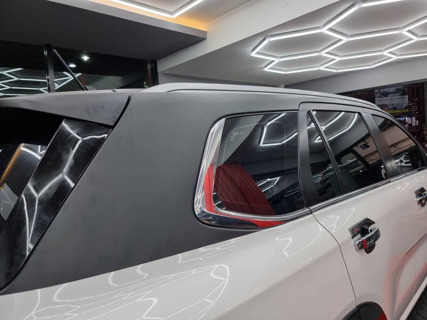 -จัด wrap หลังคาดำด้านครึ่งคัน-ฟิล์มใสกันรอย ไฟหน้า + ท้าย พร้อมฟิล์มจอ